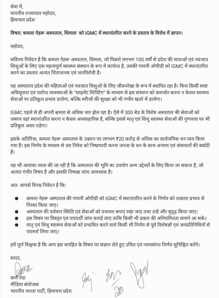 ₹20 करोड़ की स्वास्थ्य परियोजना पर खतरा और जनता पर आर्थिक बोझ—भाजपा ने राज्यपाल से हस्तक्षेप की मांग रखी