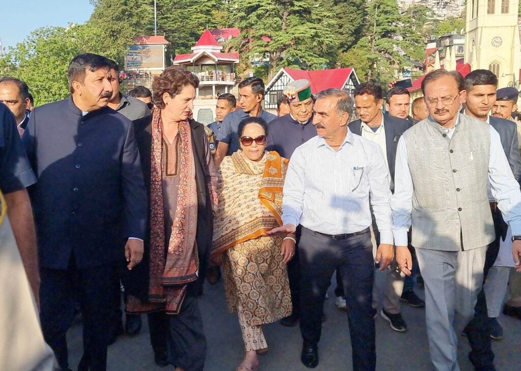 हिम न्यूज़ शिमला- भारतीय राष्ट्रीय कांग्रेस की वरिष्ठ नेता प्रियंका गांधी और मुख्यमंत्री ठाकुर सुखविंदर सिंह सुक्खू ने उप-मुख्यमंत्री मुकेश अग्निहोत्री, सांसद व प्रदेश कांग्रेस अध्यक्ष प्रतिभा सिंह के साथ आज शिमला के ऐतिहासिक माल रोड में चहलकदमी की।