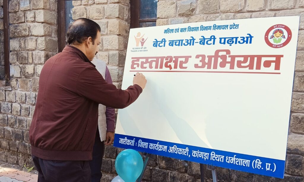 हिम न्यूज़ धर्मशाला। बेटी बचाओ बेटी पढ़ाओ अभियान के सफलतापूर्ण 10 वर्ष पूरे होने के उपलक्ष्य पर धर्मशाला में एक जागरूकता रैली निकाली गई। अतिरिक्त उपायुक्त विनय कुमार ने महिला एवं बाल विकास द्वारा आयोजित इस रैली को हरी झंडी दिखाकर रवाना किया। एडीसी ने इस दौरान बेटी बचाओ बेटी बचाओ अभियान को और सुदृढ़ व सफल बनाने के लिए हस्ताक्षर अभियान का भी शुभारंभ किया तथा अभियान के तहत सेल्फी प्वाइंट पर चित्र लिया।अपने संबोधन में एडीसी ने जिले में आंगनवाडी कार्यकर्ताओं द्वारा किए जा रहे प्रयासों और उनके परिश्रम की सराहना की।