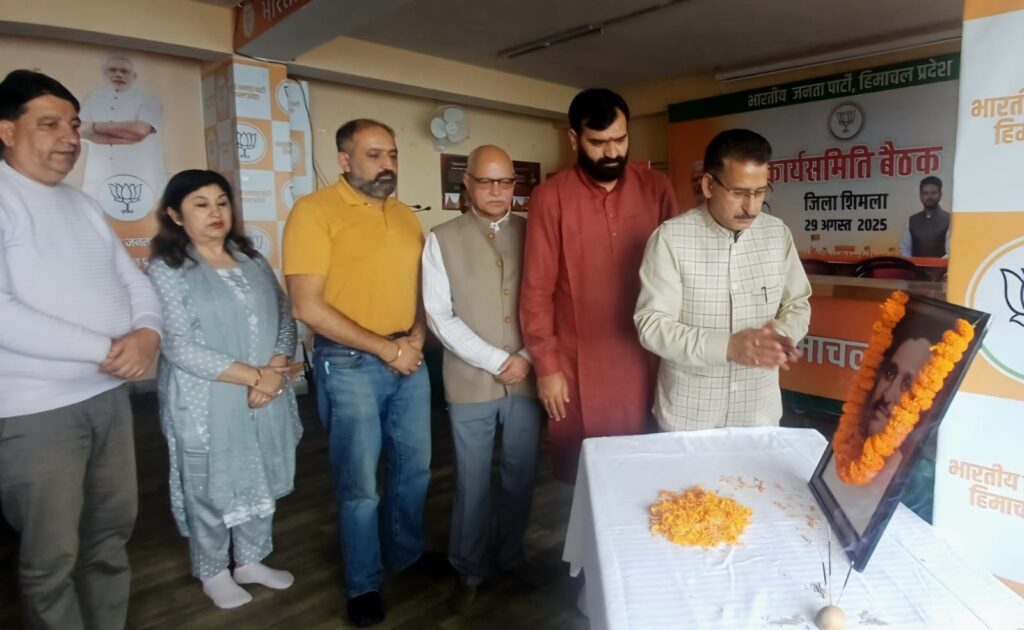 हिम न्यूज़ शिमला। भाजपा मुख्यालय दीपकमल चक्कर में शिमला ग्रामीण विधानसभा क्षेत्र के अंतर्गत आने वाले बूथ संख्या 112 एवं 113 द्वारा प्रधानमंत्री नरेंद्र मोदी के जन्मदिन के उपलक्ष्य में सेवा पखवाड़ा के अंतर्गत भाजपा के संस्थापक पंडित दीनदयाल उपाध्याय की जन्म जयंती के अवसर पर विभिन्न कार्यक्रमों का आयोजन किया गया। इस उपलक्ष पर पंडित दीनदयाल उपाध्याय के जीवन पर सभी कार्यकर्ताओं ने अपने विचार रखें उसके उपरांत एक घंटा स्वच्छता कार्यक्रम का अभियान चला और अंत में एक पेड़ मां के नाम अभियान के अंतर्गत पौधारोपण किया गया। इस कार्यक्रम में विशेष रूप से भाजपा प्रदेश महामंत्री संजीव कटवाल उपस्थित रहे।