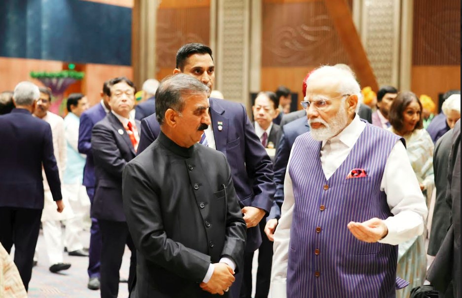 हिम न्यूज़,शिमला-मुख्यमंत्री ठाकुर सुखविंदर सिंह सुक्खू ने शनिवार को नई दिल्ली के प्रगति मैदान स्थित भारत मंडपम में राष्ट्रपति द्रौपदी मुर्मु द्वारा जी-20 शिखर सम्मेलन के अवसर पर आयोजित रात्रि भोज में भाग लिया। इस अवसर पर मुख्यमंत्री ने प्रधानमंत्री नरेन्द्र मोदी से भी मुलाकात की और उनके समक्ष प्रदेश हित से जुड़े मुद्दों पर चर्चा की।