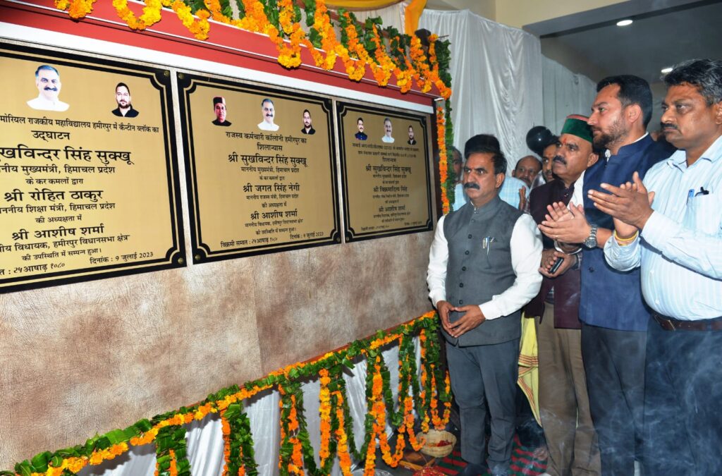 हिम न्यूज़ हमीरपुर। मुख्यमंत्री ठाकुर सुखविंदर सिंह सुक्खू ने आज भारी बारिश के बीच राजकीय महाविद्यालय हमीरपुर में 94 लाख रुपये की लागत से निर्मित कैंटीन ब्लॉक तथा 25 करोड़ रुपये की लागत से निर्मित हिमाचल प्रदेश तकनीकी विश्वविद्यालय (एचपीटीयू) हमीरपुर के नए शैक्षणिक खण्ड का उद्घाटन किया।
