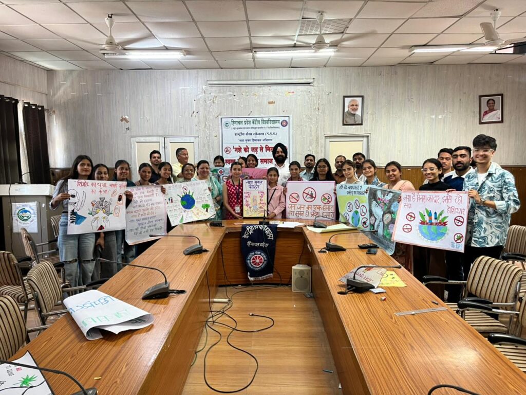 हिम न्यूज़ धर्मशाला। हिमाचल प्रदेश केंद्रीय विश्वविद्यालय धर्मशाला के धौलाधार परिसर-1 में विद्यार्थियों के बीच नशा मुक्ति के प्रति जागरूकता बढ़ाने के उद्देश्य से राष्ट्रीय सेवा योजना (NSS), रेड रिबन क्लब और मानसिक स्वास्थ्य एवं कल्याण प्रकोष्ठ के संयुक्त तत्वावधान में “नशा मुक्ति संकल्प : स्वस्थ भारत से विकसित भारत” विषय पर पोस्टर मेकिंग एवं नारा लेखन प्रतियोगिता का आयोजन किया गया ।