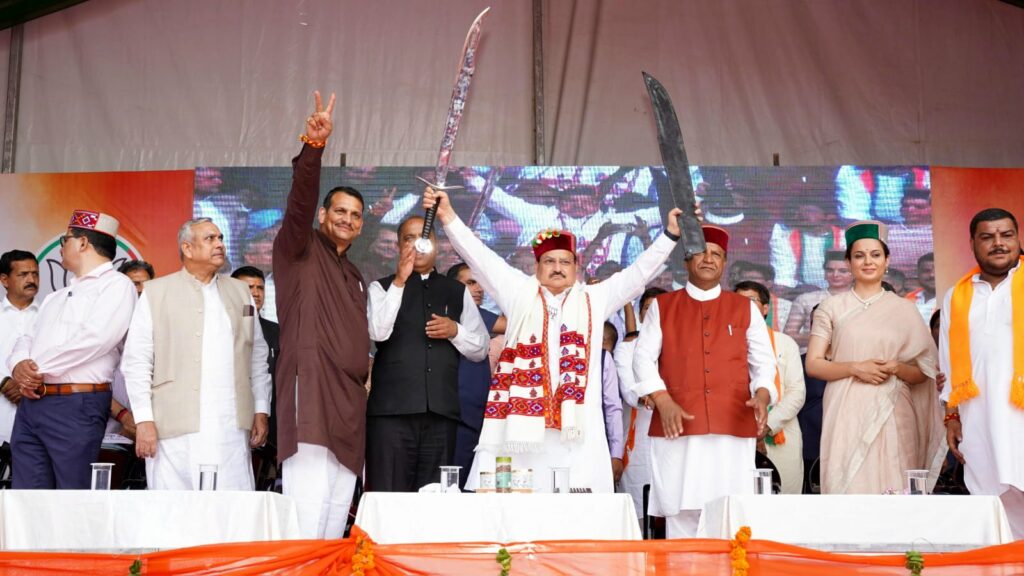हिम न्यूज़ मंडी। भारतीय जनता पार्टी के राष्ट्रीय अध्यक्ष जगत प्रकाश नड्डा ने आज बुधवार को हिमाचल प्रदेश के मंडी में आयोजित विशाल जनसभा को संबोधित किया और घमंडिया गठबंधन की परिवारवादी पार्टियों पर भ्रष्टाचार को लेकर जमकर निशाना साधा। कार्यक्रम के दौरान मंच पर भाजपा के राष्ट्रीय उपाध्यक्ष और उत्तर भारत के प्रभारी सौदान सिंह, पूर्व मुख्यमंत्री जयराम ठाकुर, प्रदेश अध्यक्ष राजीव बिंदल एवं मंडी से भाजपा प्रत्याशी एवं प्रसिद्ध अभिनेत्री कंगना रनौत सहित अन्य नेतागण उपस्थित रहे।