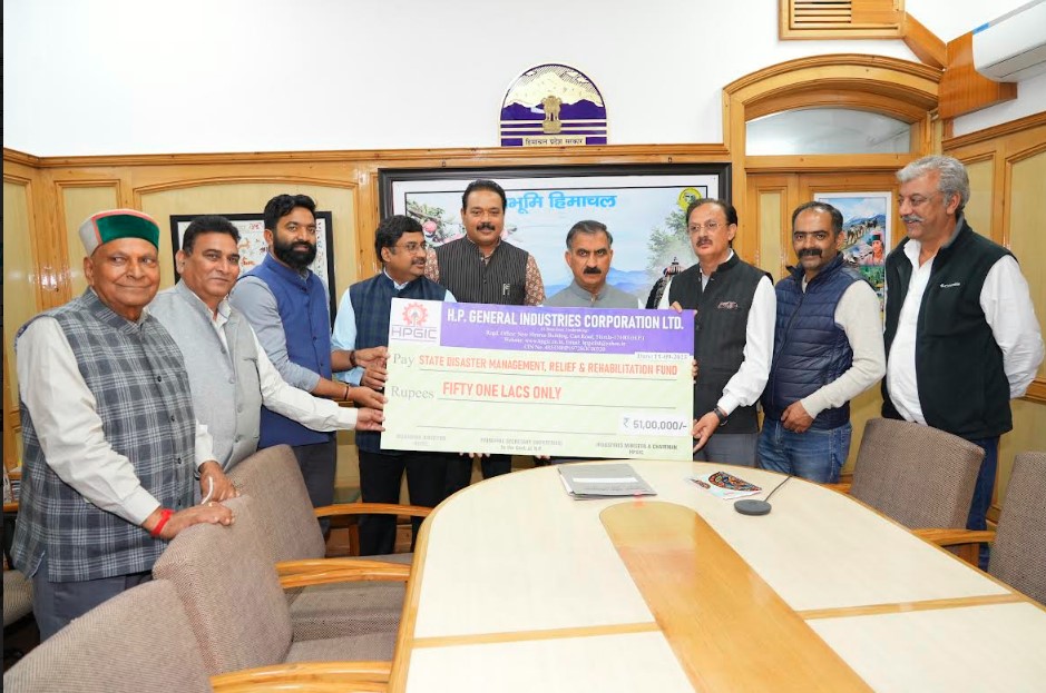 हिम न्यूज़,शिमला-मुख्यमंत्री ठाकुर सुखविंदर सिंह सुक्खू को आपदा राहत कोष के लिए आज यहां हिमाचल प्रदेश सामान्य उद्योग निगम की ओर से उद्योग मंत्री हर्षवर्धन चौहान ने 51 लाख रुपये का चेक भेंट किया।