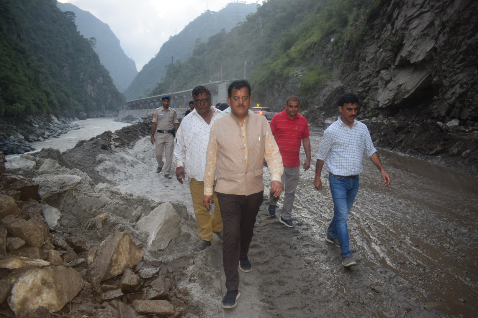 हिम न्यूज़,शिमला- सीपीएस ने भारी चट्टानों के गिरने से अवरुद्ध मार्ग का लिया जायजा इस दौरान रास्ता खुलने के इंतजार में बजौरा से जलोगी तक खड़े सेब व सब्जी से भरे छोटे व बड़े वाहनों को रवाना कर यातायात बहाल किया। उलेखनीय है कि जलोगी सुरंग के मुहाने पर 30 अगस्त रात लगभग 12 बजे के करीव भारी चटटानों के गिरने से यह मार्ग अवरुद्ध हो गया था जिस कारण कुल्लू की तरफ से सेब व सब्जियों से लदे मालवाहक वाहनों व मंडी की तरफ से आवश्यक वस्तुओं व टेंकरो की लंबी लम्बी कतारे लग गई थी।