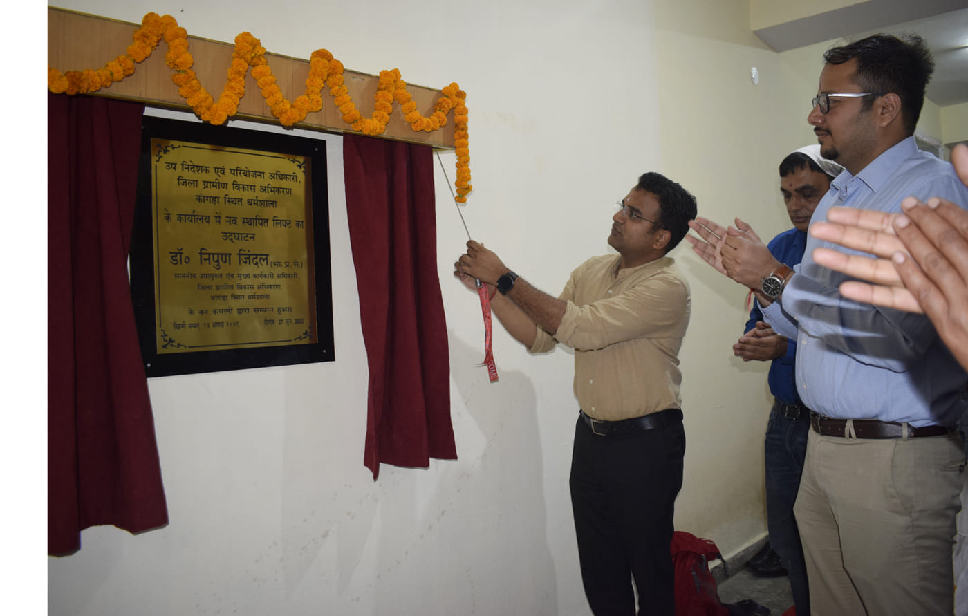 हिम न्यूज़,धर्मशाला-उपायुक्त कांगड़ा डॉ. निपुण जिंदल ने आज मंगलवार को डीआरडीए कार्यालय में 35 लाख रुपये से स्थापित लिफ्ट सुविधा का उद्घाटन किया। उन्होंने डीआरडीए कार्यालय के सभागार में उपस्थित जिला के अधिकारियों को संबोधित करते हुए कहा कि डीआरडीए कार्यालय जिला का विकास भवन है, जहां से जिला भर में हो रहे विकास कार्यों का संचालन किया जा रहा है। इस विकास भवन की जिले की तमाम पंचायतों में विकासात्मक कार्यों को गति देने में महत्वपूर्ण भूमिका है। उन्होंने कहा कि लिफ्ट सुविधा के आरंभ होने से विकास भवन में विकास का एक नया अध्याय जुड़ा है। उन्होंने सभी से कांगड़ा जिले के संपूर्ण विकास के लिए मजबूत टीम भावना से कार्य करते रहने और इसी प्रकार तरक्की के नित नए अध्याय जोड़ने के लिए काम करने का आग्रह किया।