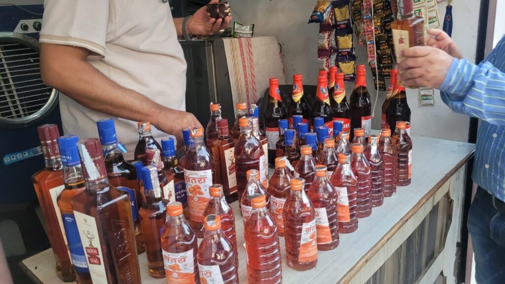 छापामारी के दौरान दो करियाना दुकानों से 80 बोतलें देशी शराब बरामद की गईं। बरामद की गई शराब चण्डीगढ़ में विक्रय के लिए थी। एक करियाना दुकान के सामने एक स्कूटी में से भी शराब की 14 बोतलें बरामद की गईं।