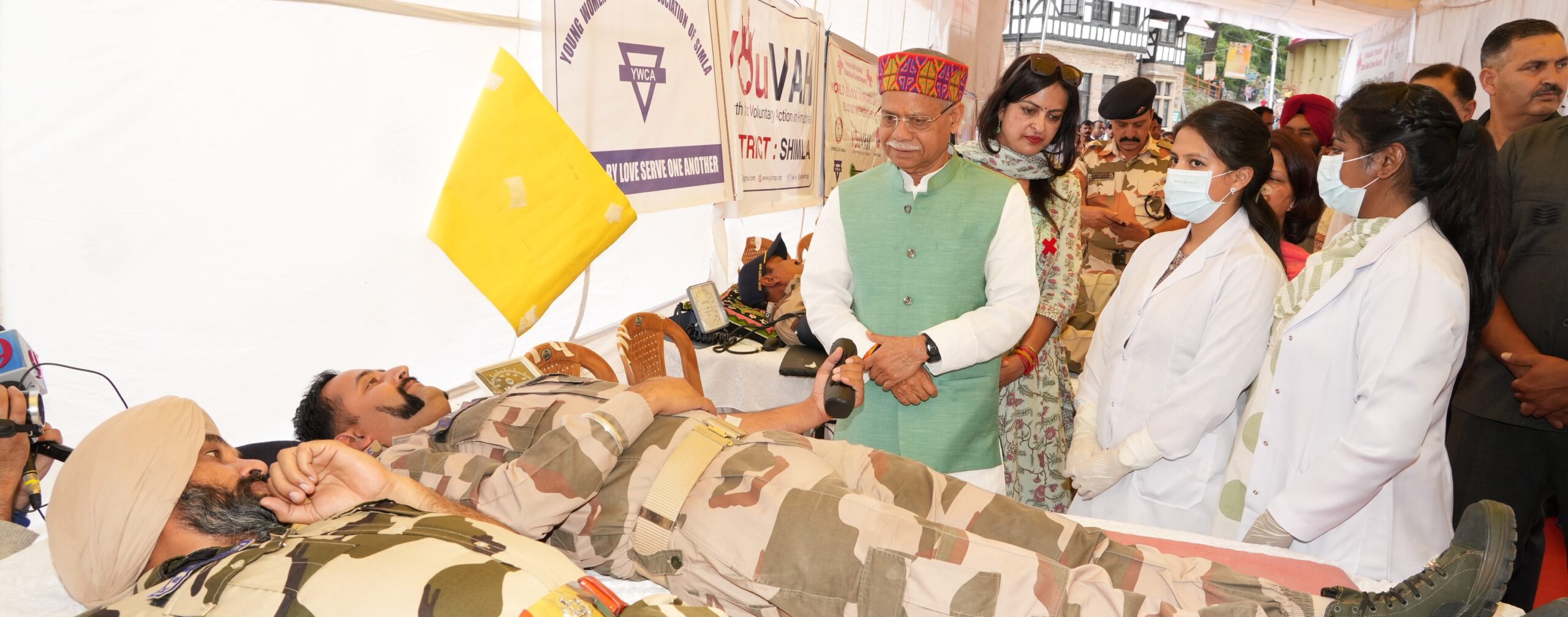 हिम न्यूज़,शिमला-हिमाचल प्रदेश राज्य रेडक्रॉस अस्पताल कल्याण शाखा द्वारा आयोजित विश्व रक्तदाता दिवस के अवसर पर राज्यपाल एवं राज्य रेडक्रॉस सोसायटी के अध्यक्ष शिव प्रताप शुक्ल ने आज शिमला के ऐतिहासिक रिज मैदान में स्वैच्छिक रक्तदान शिविर का शुभारम्भ किया।