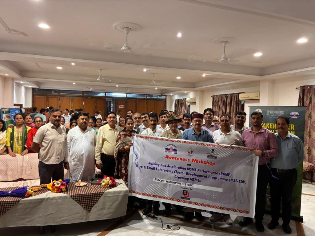हिम न्यूज़ हमीरपुर। उद्योग विभाग, हिमाचल प्रदेश सरकार द्वारा जिला हमीरपुर में एक जागरूकता कार्यशाला का आयोजन किया गया। इस कार्यशाला का उद्देश्य राज्य में सूक्ष्म, लघु एवं मध्यम उद्यम (एमएसएमई) पारिस्थितिकी तंत्र को मजबूत बनाना, प्रतिस्पर्धात्मकता को बढ़ावा देना, सतत औद्योगिक प्रथाओं को प्रोत्साहित करना तथा सरकारी पहलों के माध्यम से उद्यमिता विकास को गति प्रदान करना था।