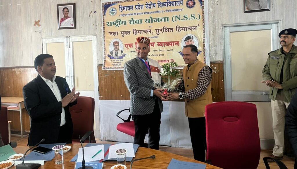 हिम न्यूज़ धर्मशाला। हिमाचल प्रदेश केंद्रीय विश्वविद्यालय में माननीय कुलपति जी के निर्देशानुसार राष्ट्रीय सेवा योजना द्वारा ‘नशा मुक्त हिमाचल, सुरक्षित हिमाचल’ विषय पर प्रदेश पुलिस प्रशासन के शीर्ष अधिकारियों के सहयोग से एक दिवसीय संगोष्ठी का आयोजन किया गया। इस गोष्ठी के संयोजक हिंदी विभाग के विभागाध्यक्ष डॉ. मलकीयत सिंह रहे।