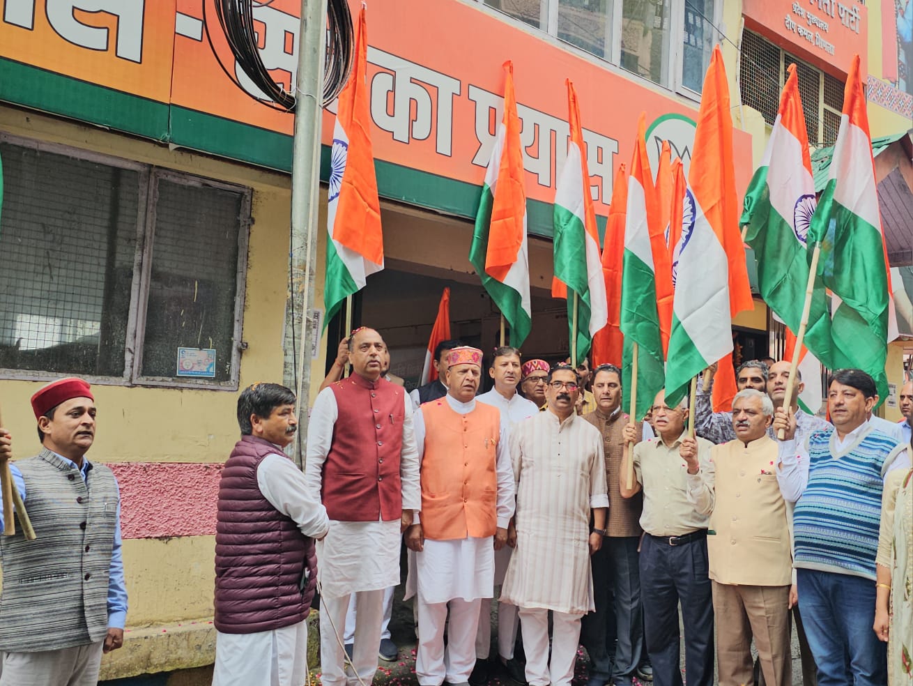 हिम न्यूज़,शिमला: भाजपा प्रदेश कार्यालय दीप कमल में भाजपा नेता प्रतिपक्ष जयराम ठाकुर एवं प्रदेश अध्यक्ष डॉ राजीव बिंदल ने भारत का तिरंगा फहराया। इस अवसर पर प्रदेश संगठन महामंत्री सिद्धरथन, सांसद डॉ सिकंदर कुमार, प्रदेश महामंत्री बिहारी लाल शर्मा, कोषाध्यक्ष कमल सूद, कार्यालय सचिव प्रमोद ठाकुर, मीडिया प्रभारी कर्ण नंदा, जिला अध्यक्ष प्रेम ठाकुर, संजय सूद, राकेश घई उपस्थित रहे।