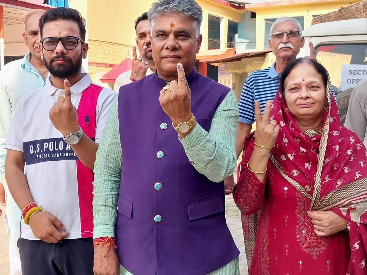 इसी प्रकार से केंद्र मंत्री अनुराग ठाकुर सांसद प्रत्याशी हमीरपुर ने बूथ संख्या 7 समीरपुर, मंडी से कंगना रनौत ने बूथ संख्या 78 भांबला, शिमला से सुरेश कश्यप ने गागल शिरको और कांगड़ा से डॉ राजीव भारद्वाज ने बूथ संख्या 82 जसूर में परिवार के साथ मतदान किया।