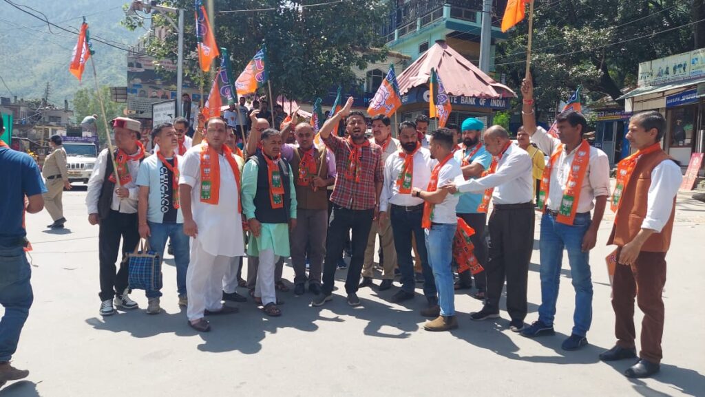 भाजपा कार्यकर्ताओं ने सुन्नी बाजार में विरोध रैली निकाली और सुक्खू दुक्खू नहीं चलेंगे, के नारे भी लगाए।