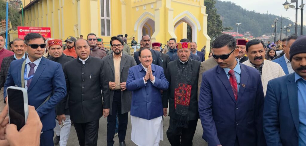 पीटरहॉफ शिमला में जैसे ही जेपी नड्डा ओपन जीत मैदान की ओर बढ़े, पूरा वातावरण भगवामय हो उठा। मैदान “जेपी नड्डा जिंदाबाद”, “नरेंद्र मोदी जिंदाबाद”, “भारत माता की जय” और “भाजपा जिंदाबाद” के नारों से गूंज उठा। हजारों कार्यकर्ताओं की मौजूदगी ने यह साफ कर दिया कि हिमाचल में भाजपा संगठन पूरी मजबूती और उत्साह के साथ आगामी चुनौतियों के लिए तैयार है।