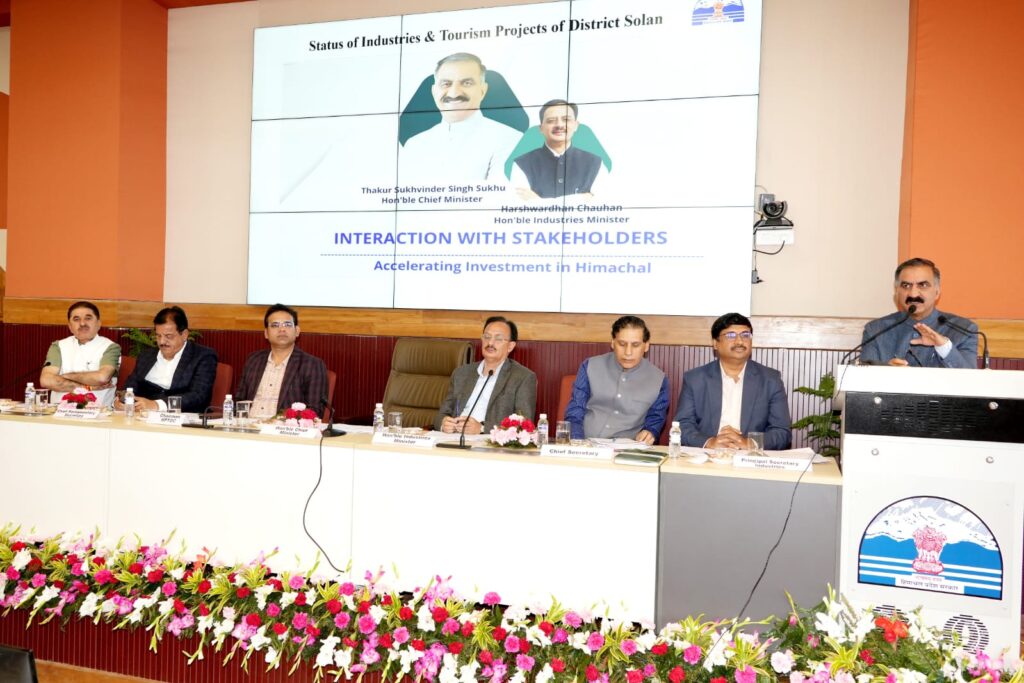 मुख्यमंत्री ठाकुर सुखविंदर सिंह सुक्खू ने आज यहां जिला सोलन के उद्योग और पर्यटन क्षेत्रों के हितधारकों के साथ विस्तृत विचार-विमर्श किया।