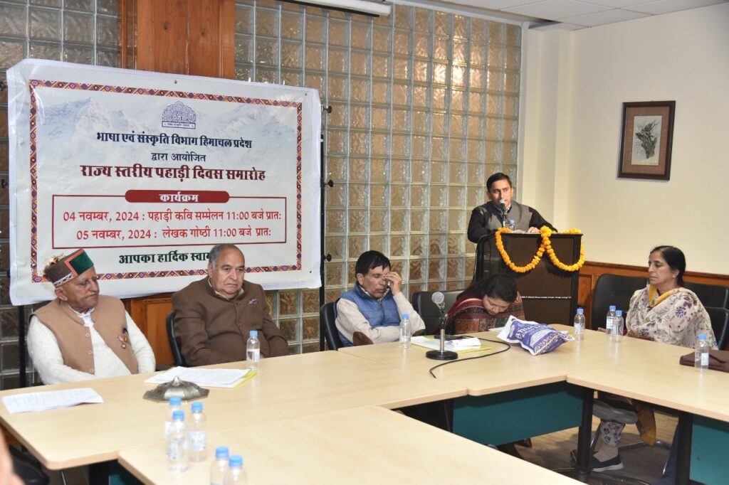 हिम न्यूज़ शिमला। राज्य स्तरीय पहाड़ी दिवस समारोह की कड़ी में आज ‘राज्य स्तरीय लेखक गोष्ठी का आयोजन गेयटी थियेटर में किया गया, जिसमें प्रदेश के लगभग 20 साहित्यकारों ने भाग लिया। कार्यक्रम में पदमश्री विद्यानंद सरैक बतौर अध्यक्ष उपस्थित रहे तथा पूर्व प्रशासनिक अधिकारी व वरिष्ठ लेखक के.आर. भारती विशिष्ट अतिथि के रूप में उपस्थित रहे।कार्यक्रम का मंच संचालन कागड़ा के वरिष्ठ साहित्यकार रमेश मस्ताना ने किया। विभाग के उप निदेशक कुसुम संघाईक ने प्रदेश भर से आए विद्वानों का स्वागत किया।