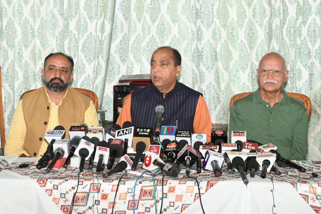 हिम न्यूज़ शिमला। शिमला के आशियाना में आयोजित प्रेस वार्ता को संबोधित करते हुए नेता प्रतिपक्ष जयराम ठाकुर ने कहा कि आतंकवाद के ख़िलाफ़ देश की लड़ाई में देश और देवभूमि हिमाचल के लोग प्रधानमंत्री के साथ कंधे से कंधा मिलाकर साथ खड़े हैं। पूरी दुनिया के नेताओं ने भारत को आतंक की लड़ाई में सहयोग देने के साथ ही पाकिस्तान के कृत्य की कड़ी निंदा की है। लेकिन देश की सबसे पुरानी पार्टी कांग्रेस के नेताओं और हिमाचल प्रदेश सरकार के मंत्रियों को ही सरकार की कार्रवाई पर भरोसा नहीं है। इसीलिए कांग्रेस के नेताओं के द्वारा भारत के पक्ष में बात कहने के बजाय पाकिस्तान के पक्ष में बात कही जा रही है।