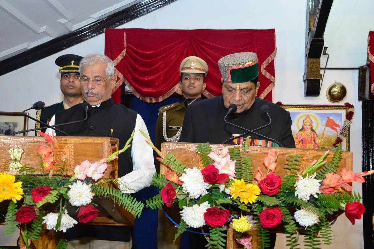 हिम न्यूज़ ,शिमला-  राज्यपाल राजेंद्र विश्वनाथ आर्लेकर ने आज यहां राजभवन में आयोजित एक गरिमापूर्ण समारोह में राज्य मंत्रिमंडल के नवनियुक्त सदस्यों को पद एवं गोपनीयता की शपथ दिलाई।