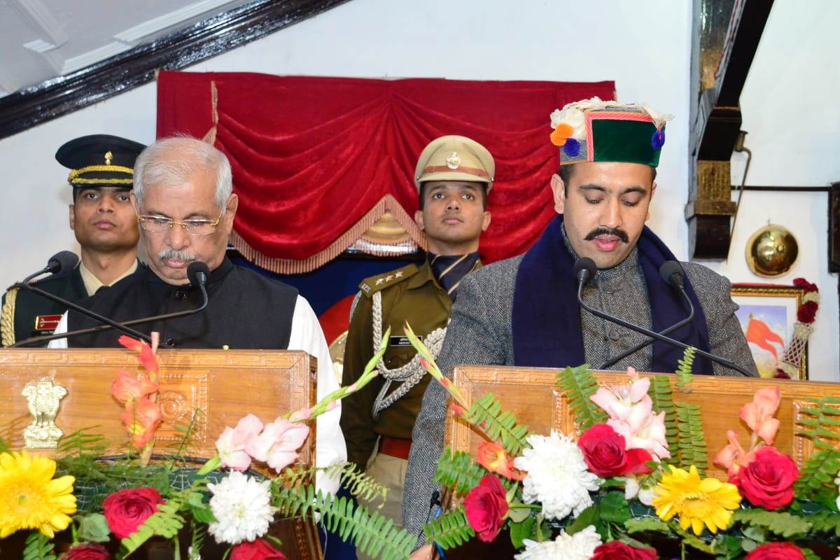 मुख्य सचिव प्रबोध सक्सेना ने कार्यवाही का संचालन किया।सोलन विधानसभा क्षेत्र से निर्वाचित डॉ. (कर्नल) धनी राम शांडिल, कांगड़ा जिला के जवाली विधानसभा क्षेत्र से चुने गए प्रो. चंद्र कुमार, सिरमौर जिला के शिलाई विधानसभा क्षेत्र से निर्वाचित हर्ष वर्धन चौहान, किन्नौर विधानसभा क्षेत्र से चुने जगत सिंह नेगी, शिमला जिला के जुब्बल-कोटखाई विधानसभा क्षेत्र से निर्वाचित रोहित ठाकुर, कसुम्पटी विधानसभा क्षेत्र से निर्वाचित अनिरुद्ध सिंह तथा शिमला ग्रामीण विधानसभा क्षेत्र से चुने गए विक्रमादित्य सिंह ने बतौर कैबिनेट मंत्री शपथ ग्रहण की। मंत्रिमंडल में शिमला जिला से तीन तथा कांगड़ा, सोलन, सिरमौर और किन्नौर से एक-एक मंत्री शामिल किए गए हैं।