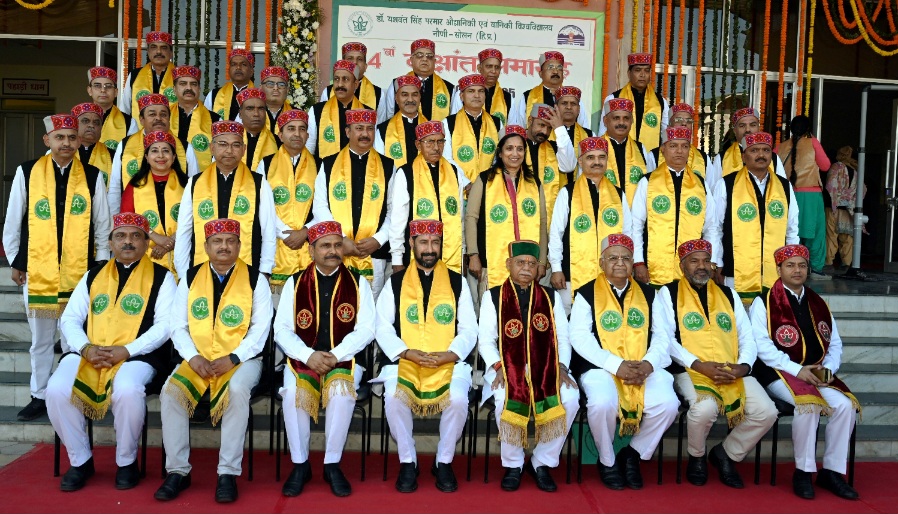 उन्होंने स्नातकों से आग्रह किया कि वह नैतिकता, संवेदनशीलता और जिम्मेदारी को बनाए रखते हुए नवाचार, उद्यमिता और किसानों की आर्थिक उन्नति में योगदान दें तथा राष्ट्र और प्रदेश के हितों को हमेशा सर्वोपरि रखें। इस अवसर पर राज्यपाल ने विश्वविद्यालय की विभिन्न प्रकाशनों का विमोचन भी किया। भारत सरकार के कृषि वैज्ञानिक चयन बोर्ड के अध्यक्ष डॉ. संजय कुमार विशेष अतिथि के रूप में समारोह में उपस्थित रहे। उन्होंने कहा कि यह दिवस ज्ञान, शोध, फील्ड अनुभव और सेवा भाव का उत्सव है। उन्होंने कहा कि बागवानी, कृषि व वानिकी हिमाचल की ग्रामीण अर्थव्यवस्था की रीढ़ हैं और इसे सुदृढ़ करने में विश्वविद्यालय के कृषि विज्ञान केंद्रों व अनुसंधान केन्द्रों का महत्त्वपूर्ण योगदान है। उन्होंने युवाओं से एकीकृत बागवानी विकास मिशन, राष्ट्रीय बागवानी मिशन और बीआईओई-3 नीति में योगदान देने का आह्वान किया।