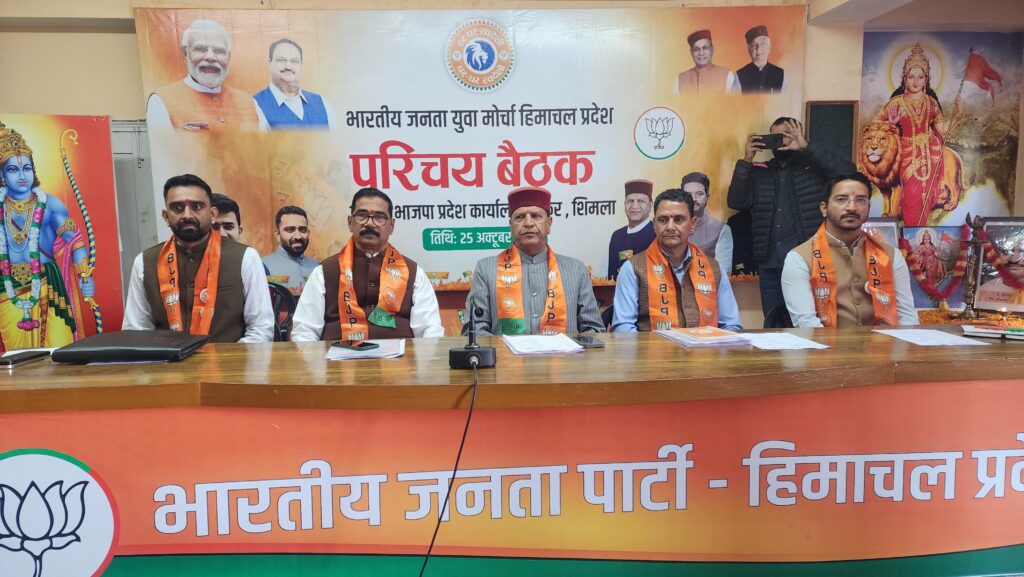 हिम न्यूज़ शिमला। डाॅ. राजीव बिन्दल, प्रदेश अध्यक्ष भाजपा ने कहा कि भारतीय जनता पार्टी ने संगठनात्मक विस्तार करते हुए प्रदेश के 6 मोर्चाें का गठन पूर्ण कर लिया है जिसमें युवा मोर्चा, महिला मोर्चा, अनुसूचित जाति मोर्चा, अनुसूचित जनजाति मोर्चा, किसान मोर्चा और ओबीसी मोर्चा शामिल हैं और सभी मोर्चों अपने-अपने कार्य में संगठन विस्तार की दृष्टि से लगे है। आज युवा मोर्चा प्रदेश पदाधिकारियों की अत्यंत महत्पूर्ण बैठक पार्टी के प्रदेश कार्यालय में सम्पन्न हुई।